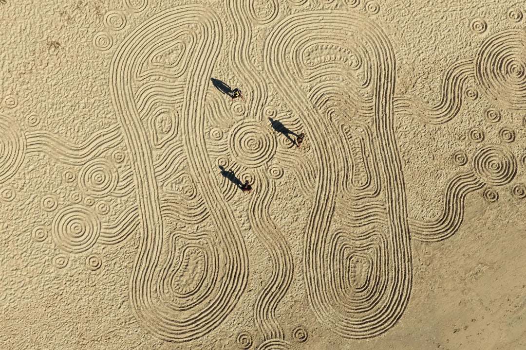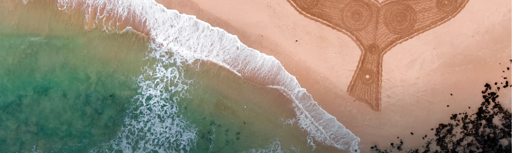 Salty One - AKA Lowell Hunter is a Multi-award winning Creative Sand Artist, 2022 National NAIDOC Award Winner. Lowell creates sand art and uses drone photography to capture the scale of his works within breathtaking landscapes, which all started simply, as a way for him to get out and connect with culture, Country and sea. His artwork has been featured from New York Fashion Week, NAIDOC week, Figurehead to AFL and Treaty for Victoria to name a few. Experience the unique style of sand art and drone photography that captures the scale of Lowell’s works within breathtaking landscapes.